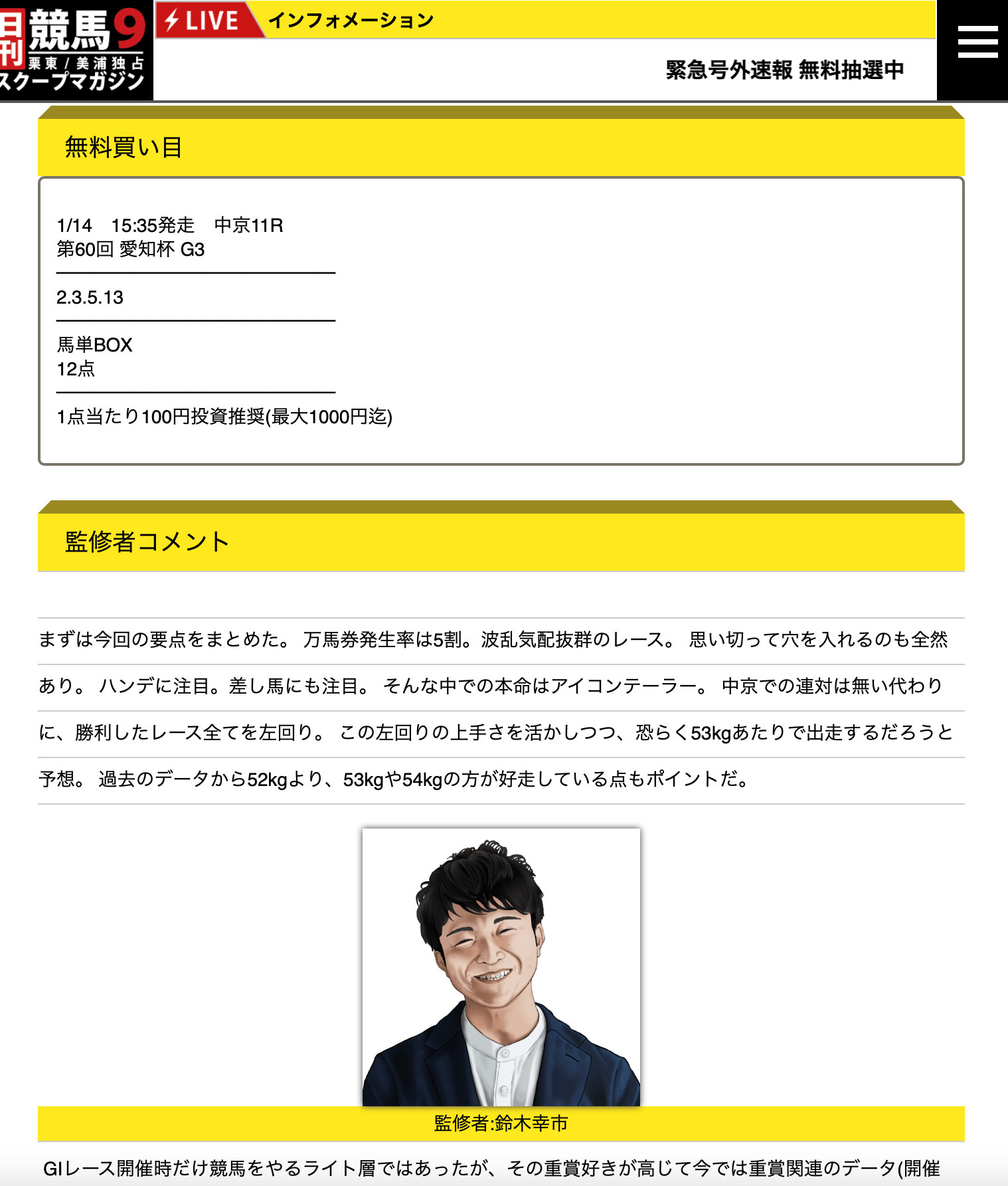 今回【日刊競馬9】を検証してみましたが、見てためになるような無料コンテンツも多く、無料情報も当たりましたので優良サイトと認定させていただきます!!
