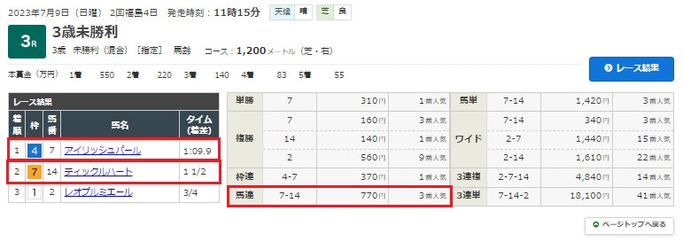 3、4番人気で決まりましたがなかなか良い配当をもらえることができました。