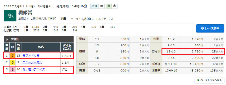 10番人気の激走を読み見事27.8倍のワイドを的中することができました!