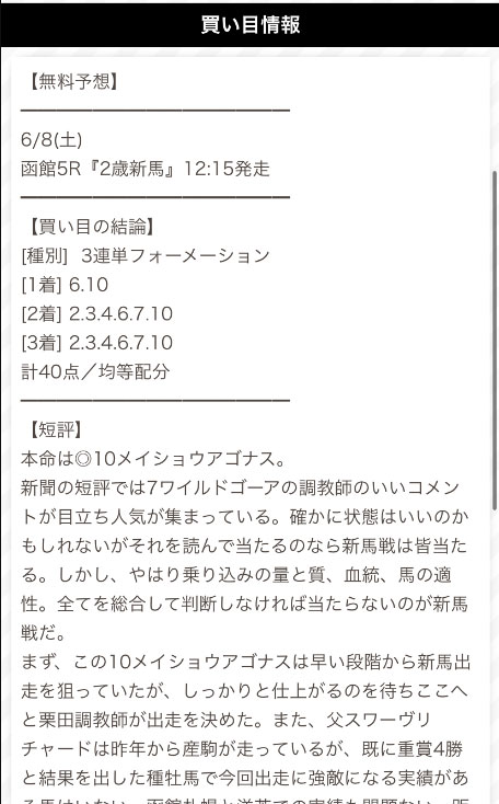 まずは土曜日に公開された買い目から見ていきたいと思います。
