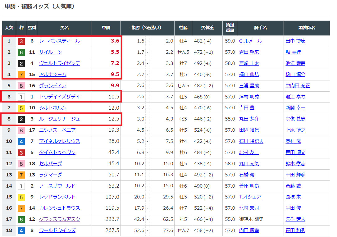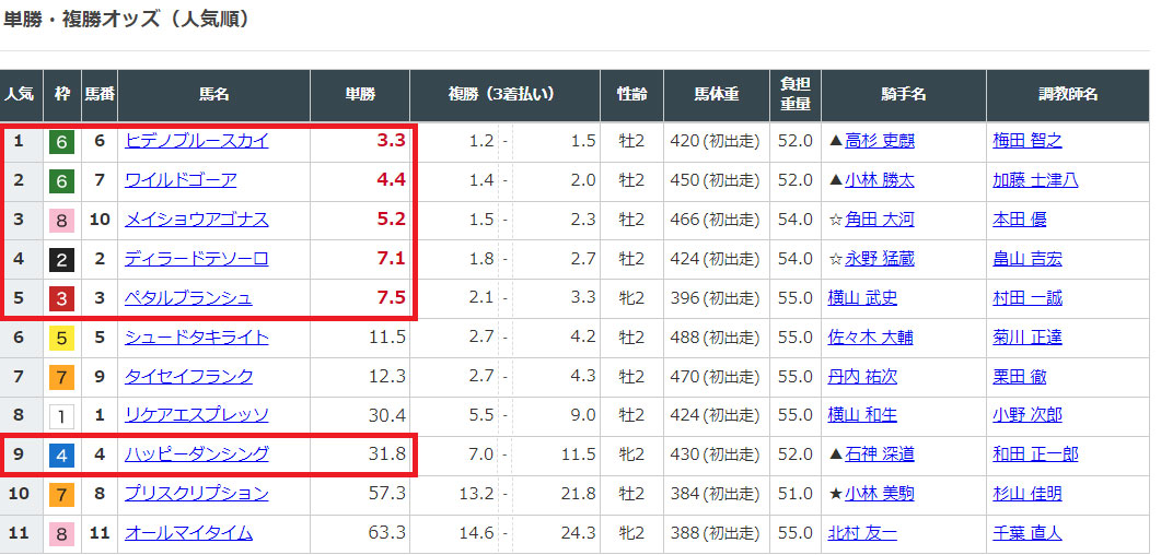 そして選んだ馬のオッズを見てみると
