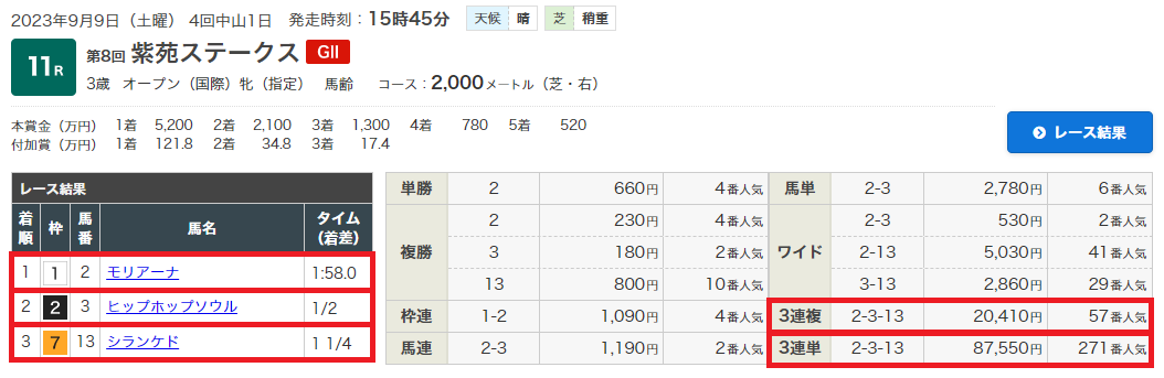 9月9日・中山11レース 紫苑ステークス(GⅡ) 3歳オープン牝馬 芝2000m