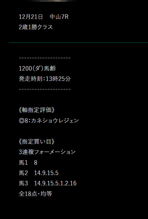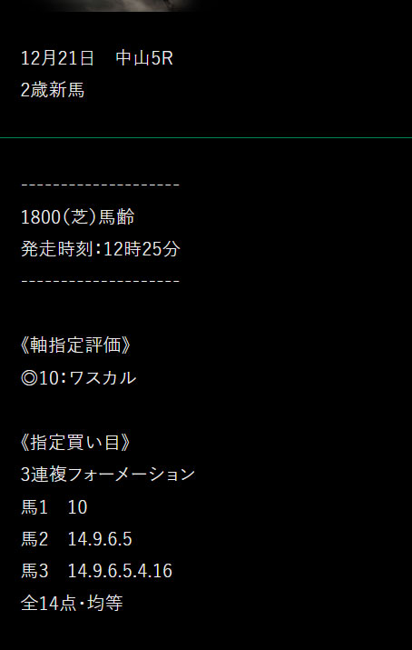 重賞の予想は公開されておらず、全て平場のレースでした。
