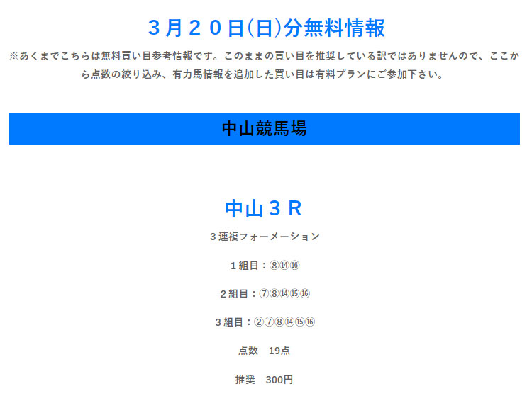 今回検証したのは勝ちうま常勝理論という予想サイトの「無料情報」です。