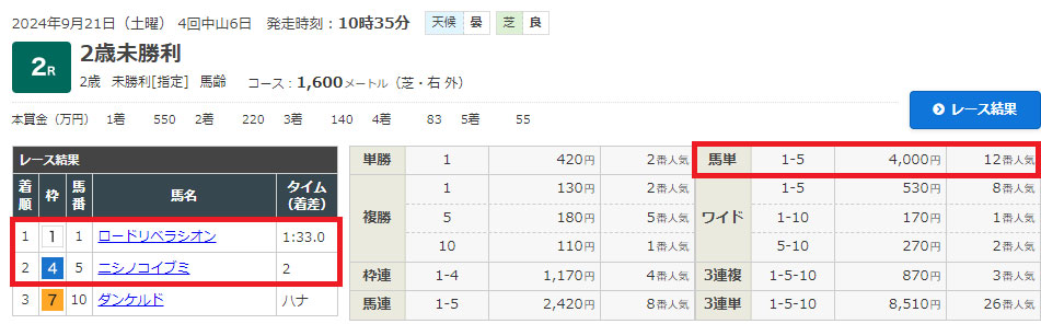 1-5で的中!3連複より美味しい配当を当てる事が出来ました!