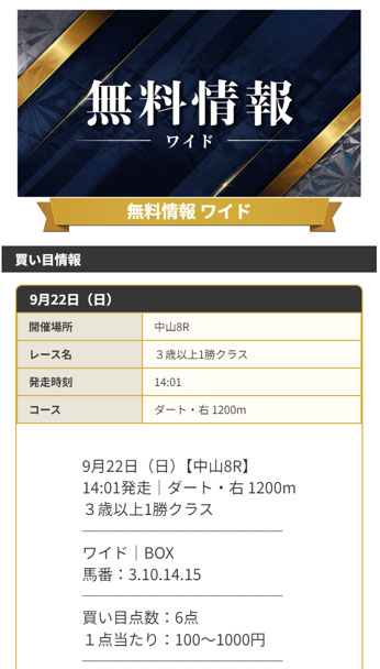 無料情報にしても有料情報にしても穴馬選びや馬券のセンスが素晴らしいなと思いました!