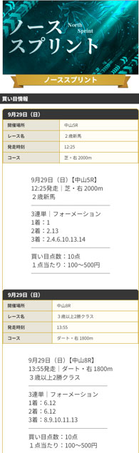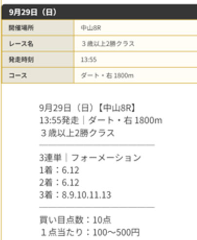 まずは9月21日 (土)に公開されていた買い目がこちらになります。