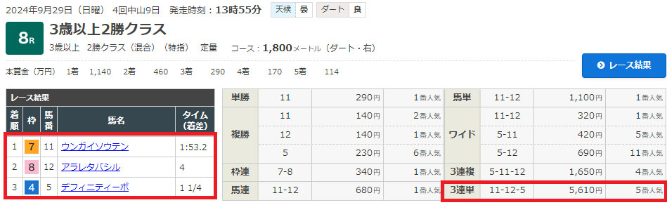 馬単は当てることが出来たので、次はワイドの予想がどうかも見たいと思います。