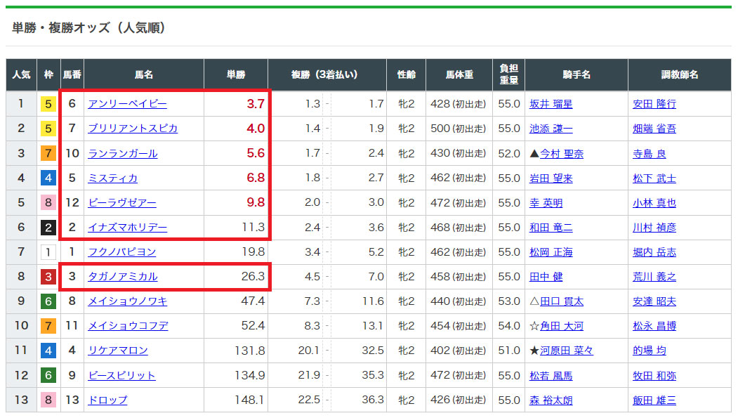 1.2番人気馬が飛んで美味しい配当だっただけに残念です。