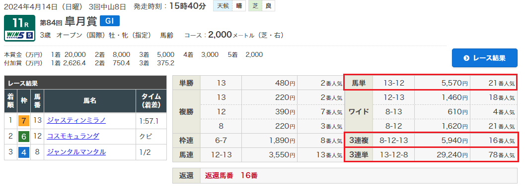 4月14日・中山11レース 皐月賞(GⅠ) 3歳オープン 芝2000m