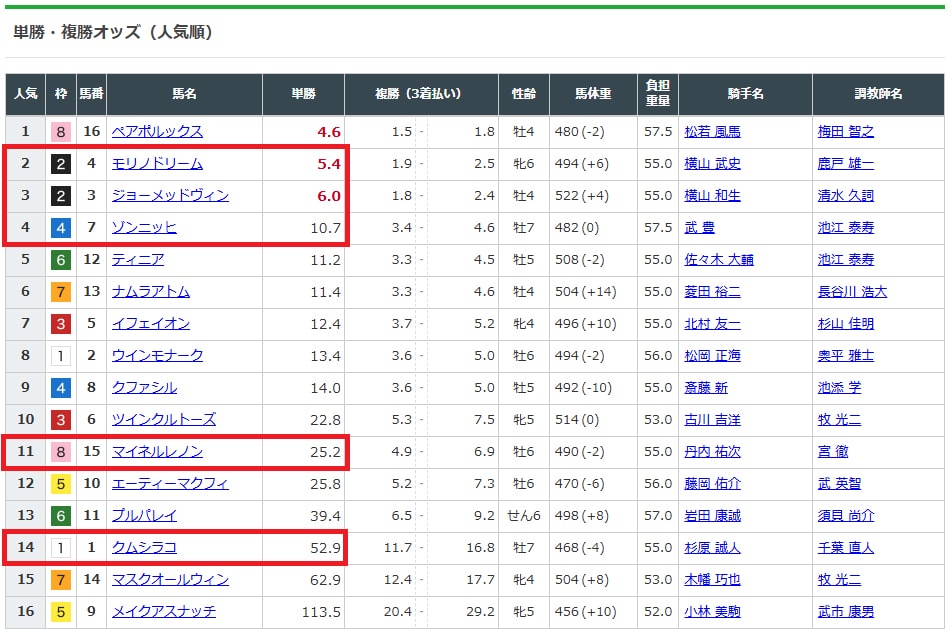 今回もまんべんなく人気馬と穴馬も選ばれていますね。