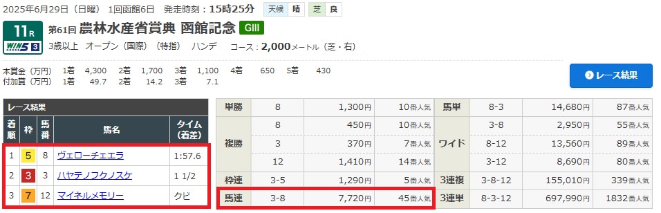 函館記念は最低人気のマイネルメモリーが3着に入ったり、ヴェローチェエラが37年ぶりとなるレコード更新したりと見どころ満載でしたね!