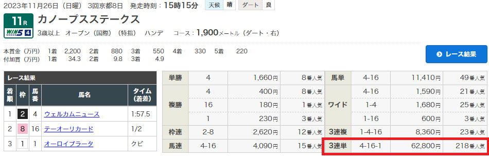 結果は競馬ファンが嬉しい『万馬券』的中!