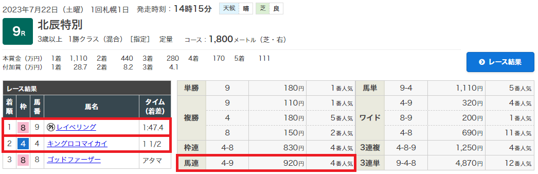 翌日23日(日)中京2Rでも無料情報馬連が的中し