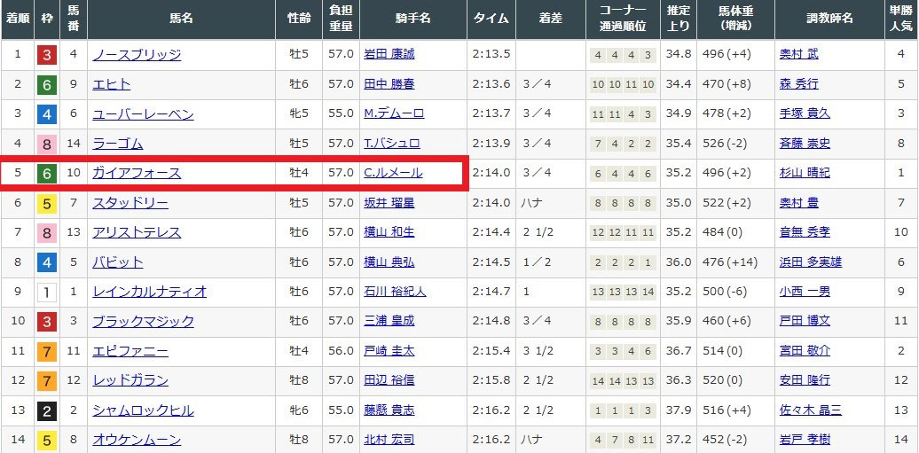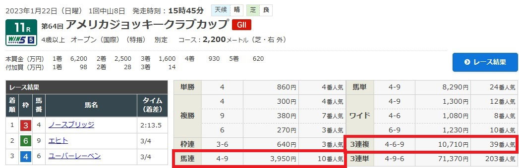 メロディーレーンの話はここまでにしてメインのAJCCの結果も見てみましょう。