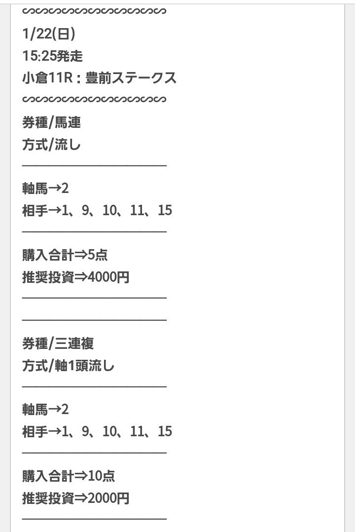 さらに小倉のメインレースの予想も公開されていたのでご紹介します。