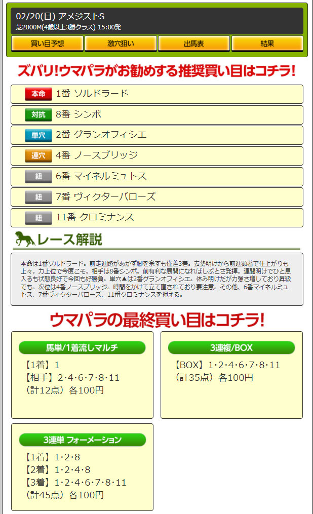ポイントを使うとスペシャル予想が公開されるようだが検証した予想内容では有料情報も全く期待出来ない!