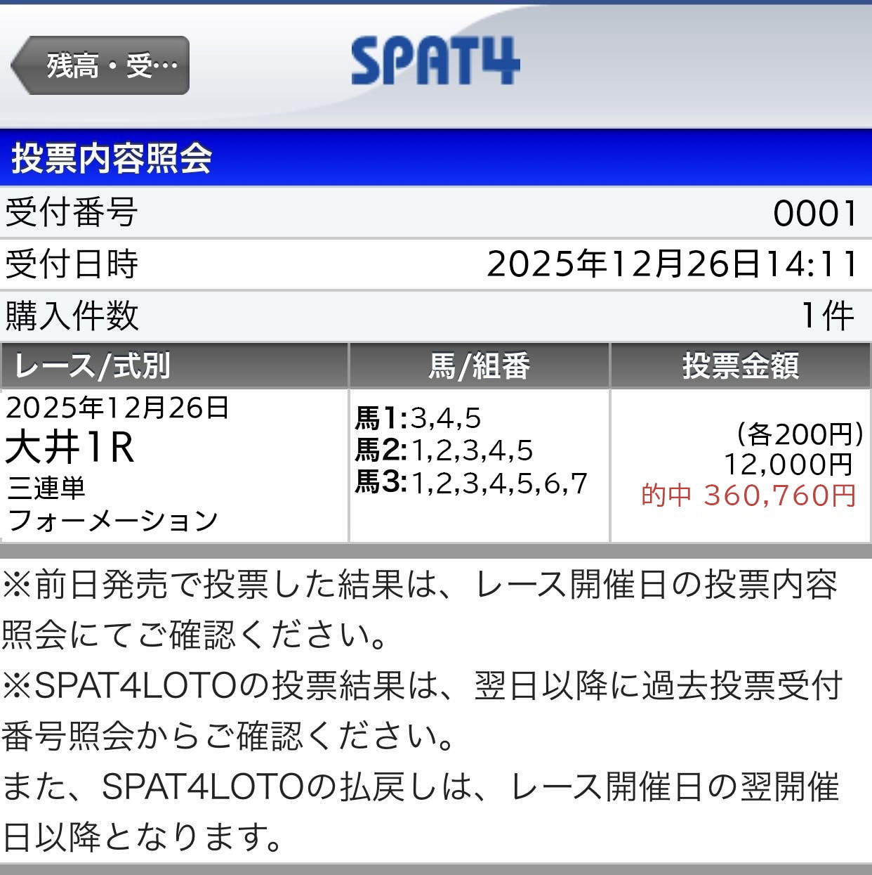 今日の無料情報12/31(水) ⑨が除外になったので3頭で買いましたが、ズバリでした💦脱帽です