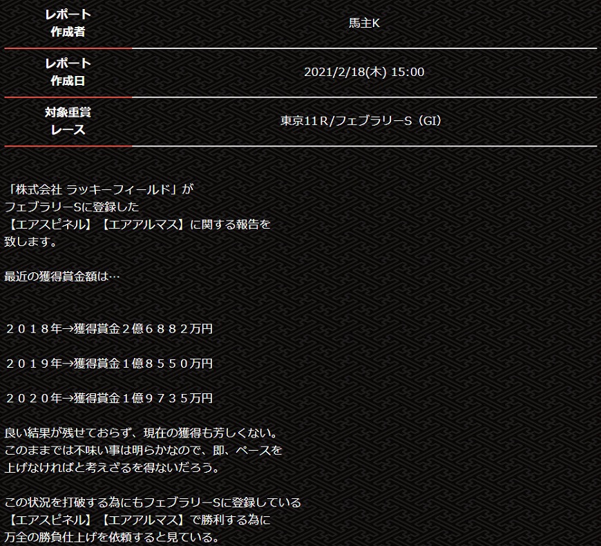 フェブラリー、馬主目線の重賞レポート大的中しているMUTEKIが凄すぎます!