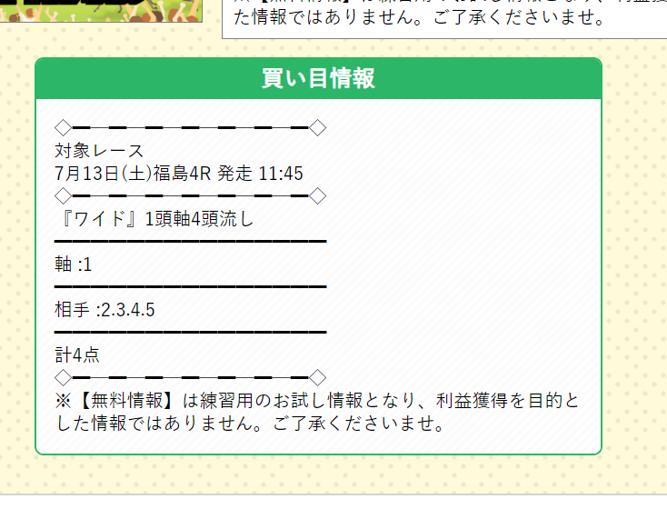 以前、有料プランに参加して、全鞍全滅でした
