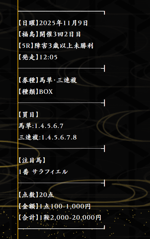 三日間開催最終日も予想出るかな?3連休で休みだから出してほしー!