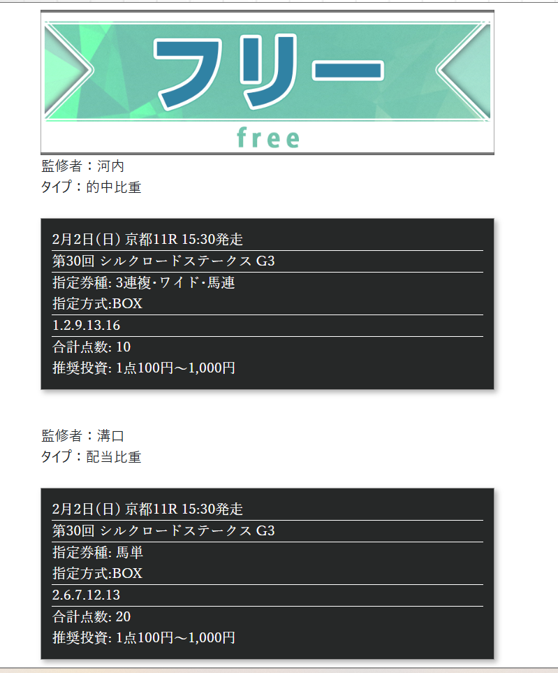 ※登録がない予想サイトなどがあればお問い合わせまでご連絡をお願いします。※