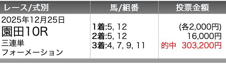 今日の無料情報12/31(水) ⑨が除外になったので3頭で買いましたが、ズバリでした💦脱帽です
