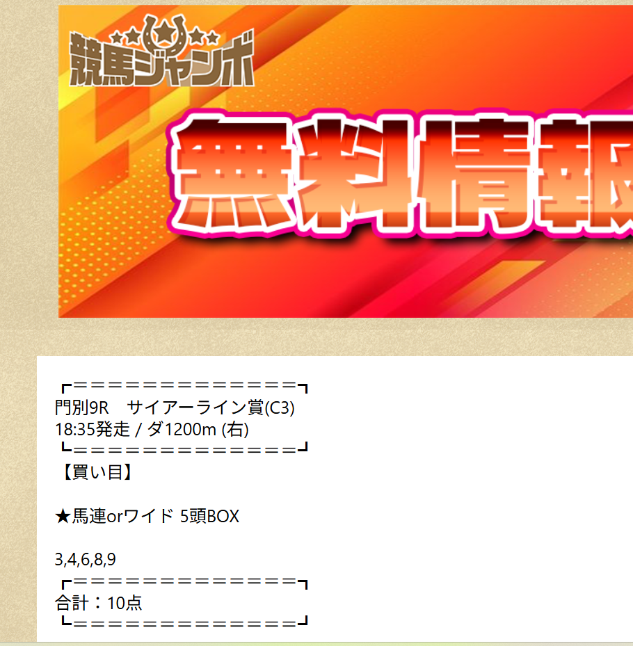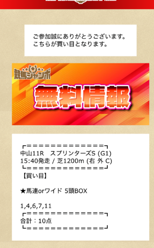 少点数買い目のご提供!