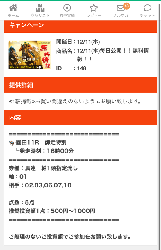 1着~3着まで入ってんだから馬連じゃなくて3連複、3連単無料予想でも良いんじゃないの?って思っちゃいました。 無料情報で現に買い目的に3連複76.4倍、3連単591.2倍当たってる買い目だからね。 これが無料情報と有料情報の差なのかもしれないけど面白いサイト見つけちゃいましたわ。